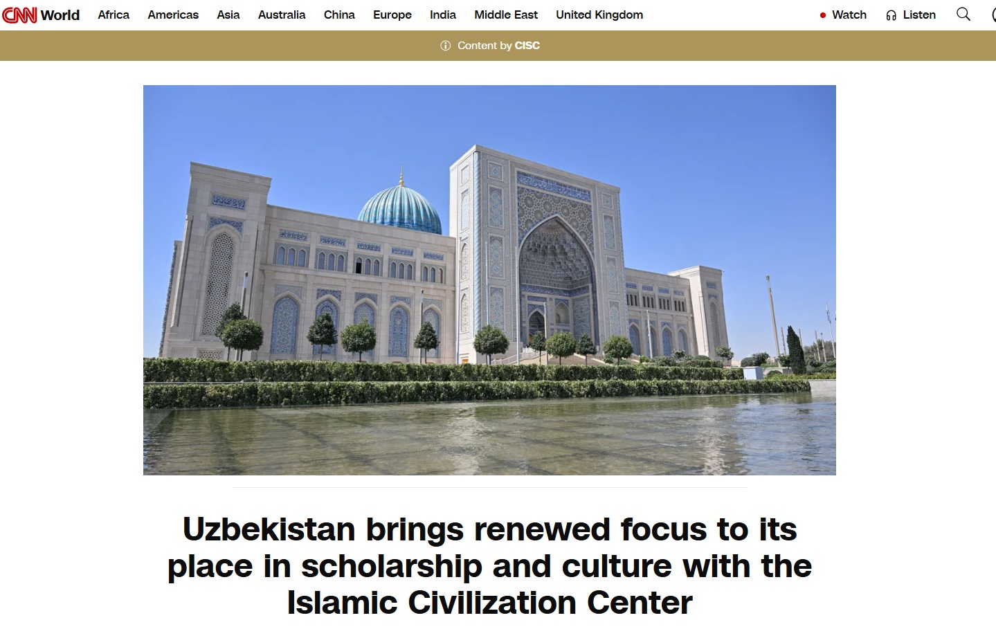 CNN World widmete dem Zentrum der Islamischen Zivilisation in Usbekistan einen Artikel