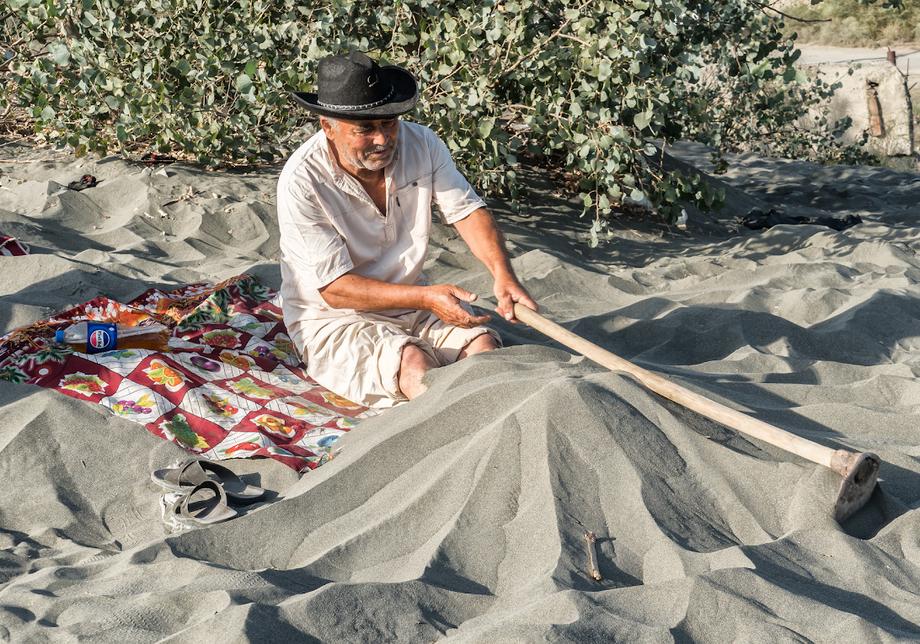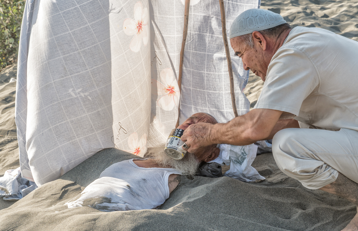 „Nach dem Eingraben in den Sand darf man fünf Tage lang nicht duschen. Sieben Tage lang sind kalte und alkoholische Getränke tabu“, erklärte ein lokaler Heiler den russischen Gästen – und nahm ihnen damit endgültig die Lust, die Prozedur auch nur teilweise auszuprobieren. Doch die Sonne neigte sich ohnehin schon dem Horizont. Die Fotografen nutzten alle visuellen Vorteile der „Goldenen Stunde“ und verließen die Düne gemeinsam mit den übrigen Besuchern.
