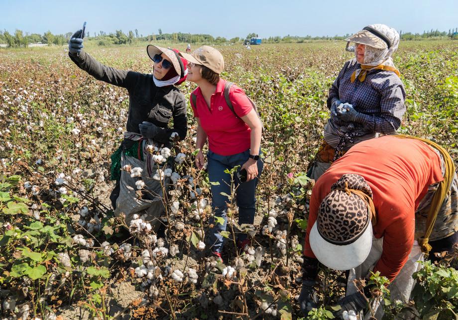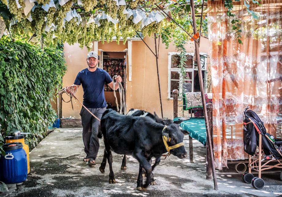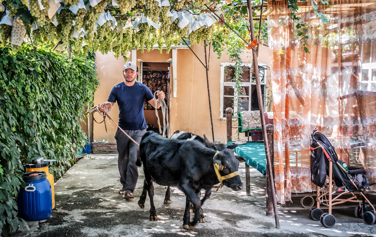 Auf der Fototour durchs Fergana-Tal gab es noch viele weitere spannende Momente. Am nächsten Tag besuchten wir im Dorf Belaryk im Bezirk Oltiaryk weitläufige private Weinberge rund um und innerhalb eines Bauernhofs. Zurück im Bezirk Buwajda sprachen wir mit Erntehelferinnen auf einem Baumwollfeld.