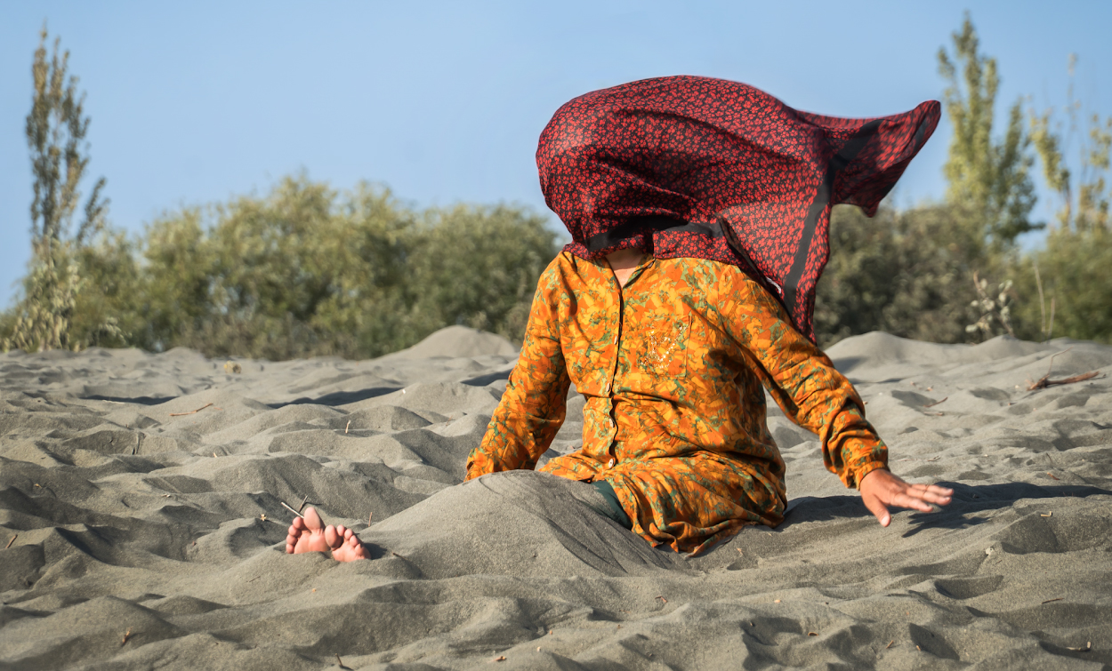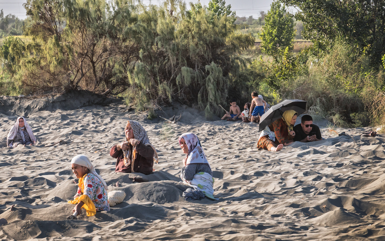 Nach der Überquerung der Brücke über den Syrdarja bogen wir nach Südwesten ab und stießen nach 15 Minuten, kurz vor dem Dorf Buston-Buva, auf … eine Art Strand. Umgeben von Feldern zwei völlig wilde, menschenleere Dünen mit aschgrauem Sand, überwachsen mit Saxaul, Tamarisken und Kandym. Über die Entstehung solcher Reliktdünen, die in der gesamten Region Fergana verstreut sind, habe ich den Lesern von „Fergana“ bereits ausführlich berichtet. Kurz sei daran erinnert: Es handelt sich um Reste der Wüste Akkum, die seit undenklichen Zeiten bis zur Mitte des 20. Jahrhunderts den gesamten zentralen Teil des Fergana-Tals einnahm, bevor sie durch den Ausbau der bewässerten Baumwollwirtschaft und die darauffolgende demografische Explosion verdrängt wurde.