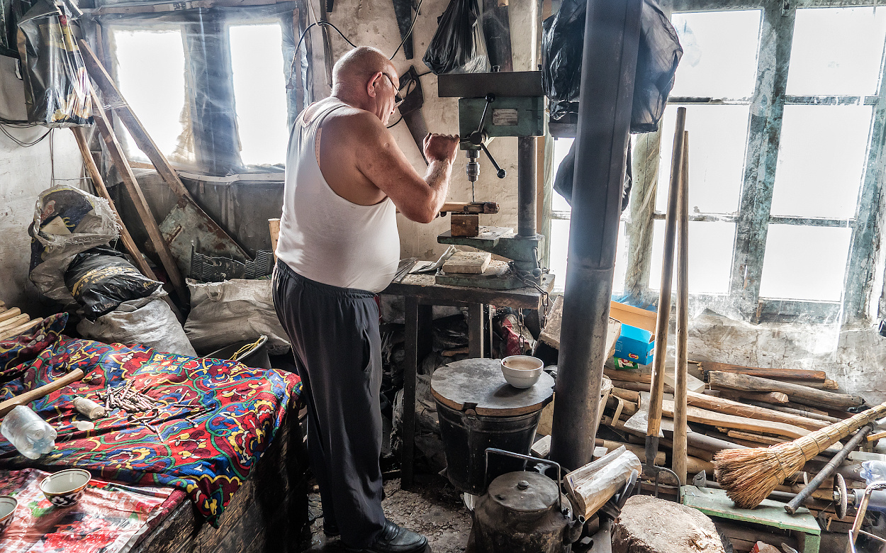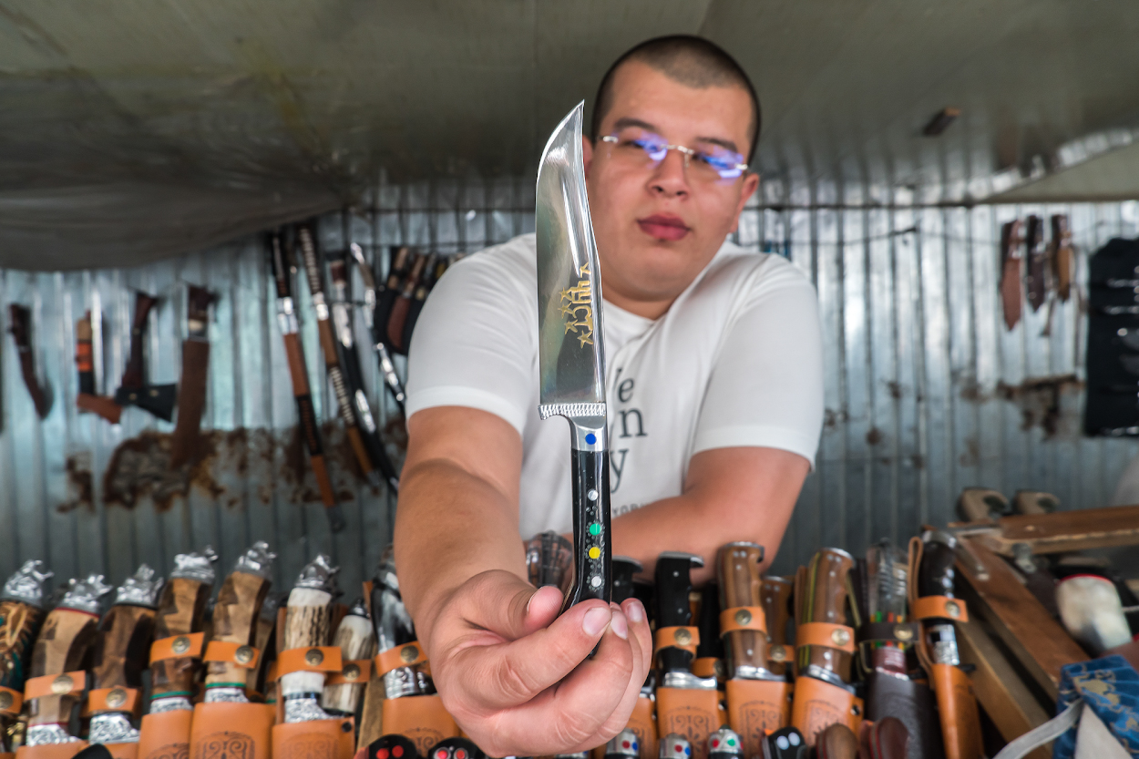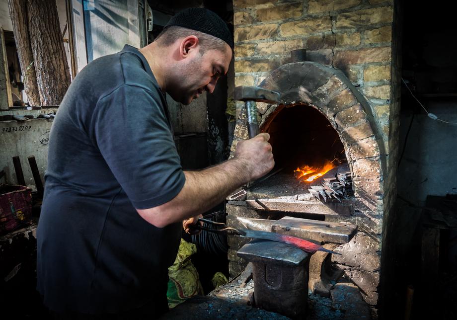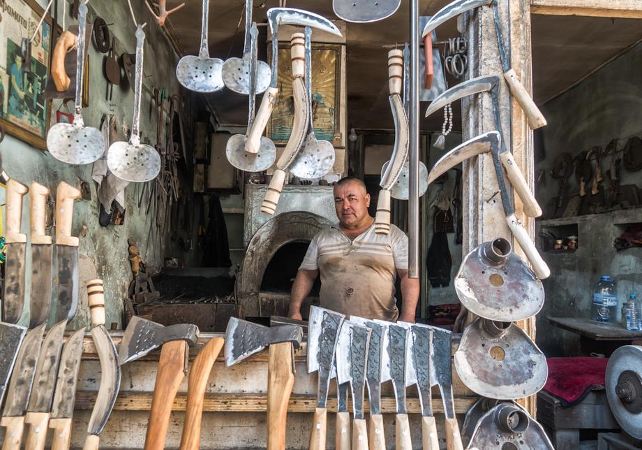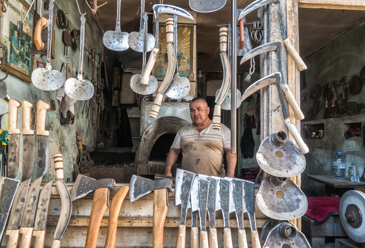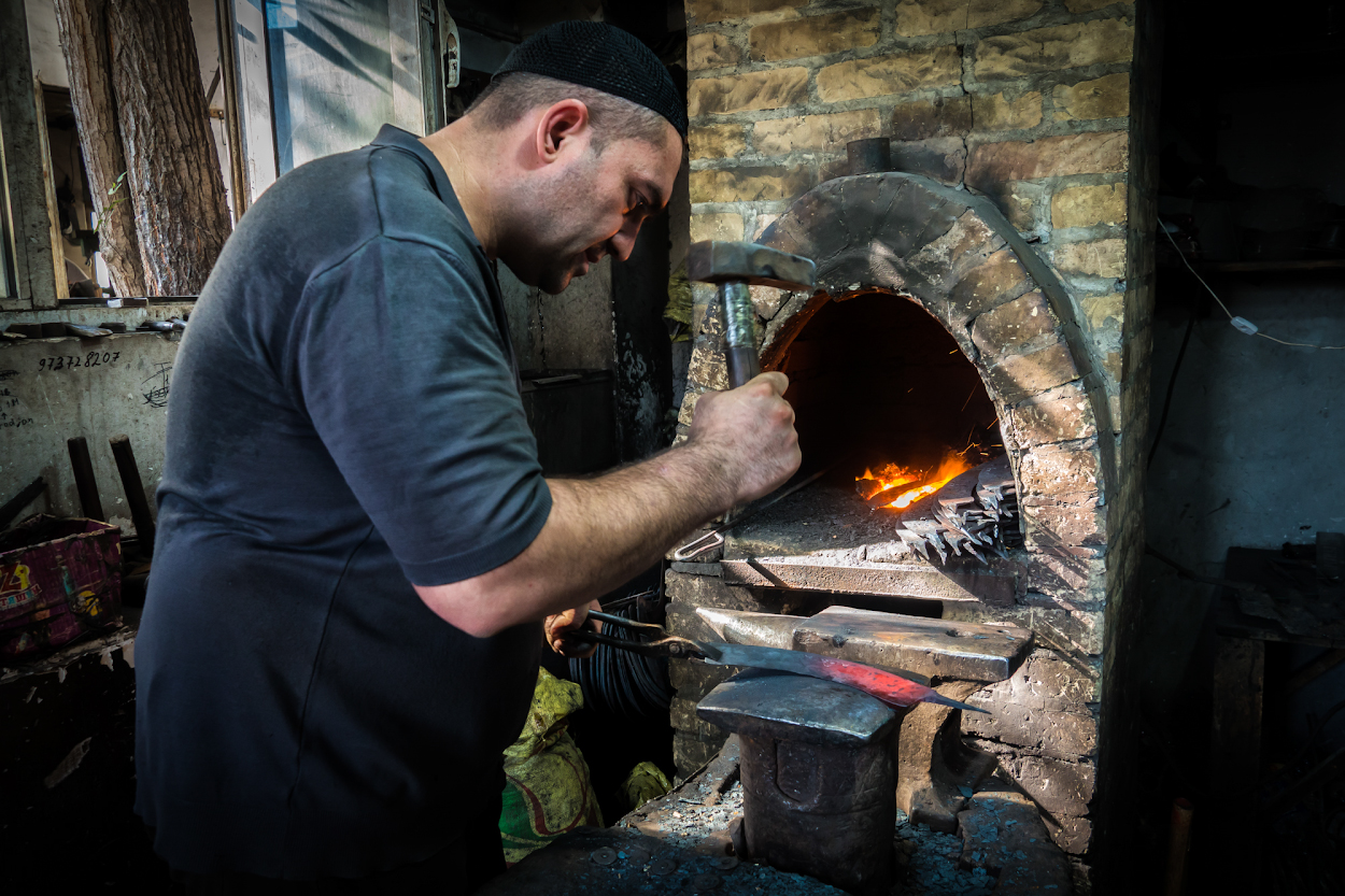 Danach fuhren wir in die Stadt Tschust, auf den Basar der traditionellen Tschuster Messer. Dort fand Anzor Schmiedewerkstätten mit brennenden Schmiedefeuern.