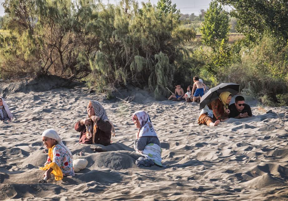 Die Düne im Bezirk Buwajda der Region Fergana ist bemerkenswert, weil hier bis heute ein mittelalterlicher Brauch lebendig ist. Ende August und Anfang September, wenn die Sonne gnadenlos brennt, aber nicht mehr tödlich, versammeln sich hier ganze Menschenmengen und verbringen den ganzen Tag damit, Bäder im glühenden Sand zu nehmen – in der Hoffnung auf Heilung von Haut-, Knochen- und Gelenkleiden sowie einigen anderen Krankheiten. Da jährlich nicht nur Bewohner der umliegenden Dörfer, sondern auch aus entfernteren Regionen Usbekistans hierherkommen, scheint es manchen tatsächlich zu helfen. Oder sie glauben es zumindest. Arme und Beine, manchmal auch der ganze Körper werden im Sand vergraben, nur Kopf und Brust bleiben frei – um Herzinfarkte zu vermeiden. Vor Sonnenstich schützt man sich mit provisorischen Schattendächern.